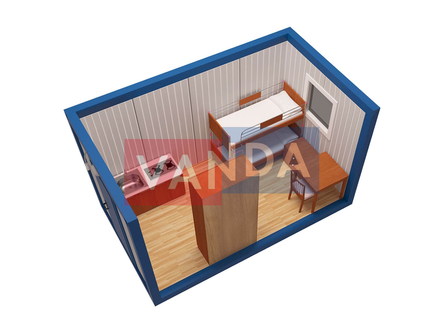 Металлическая бытовка с кухней в тамбуре 5,85 x 2,4 - Оргалит ДВП