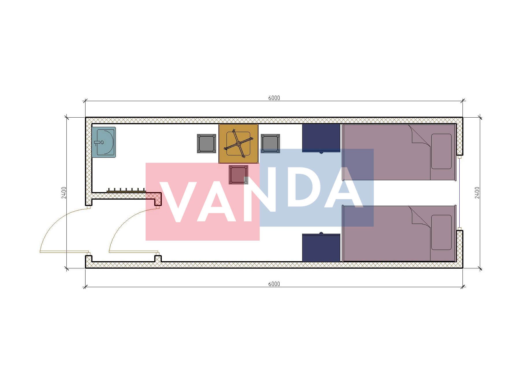 Металлическая бытовка распашонка 5,85 x 2,4 - Оргалит ДВП