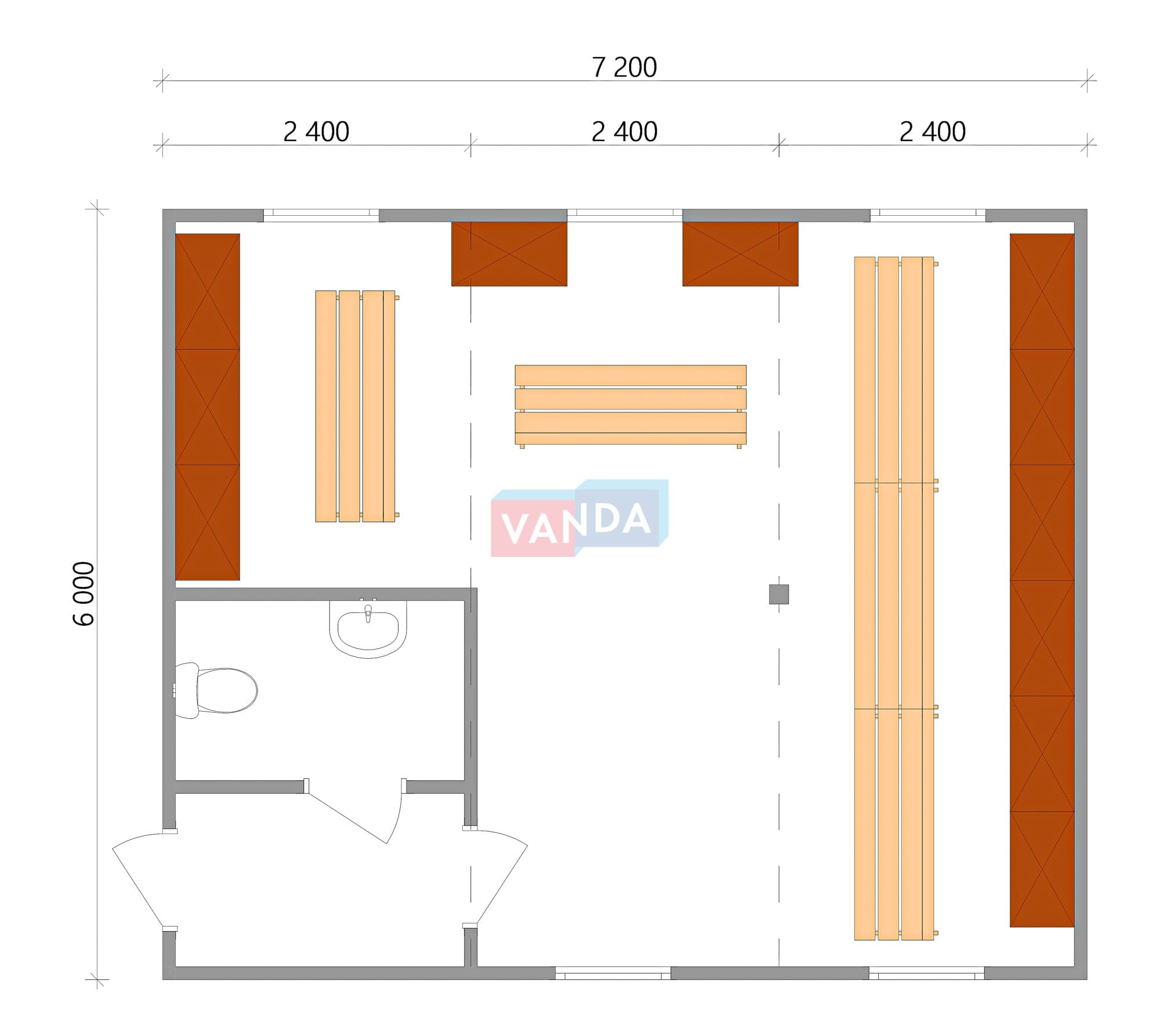 Проект модульной раздевалки 6.0х7,2